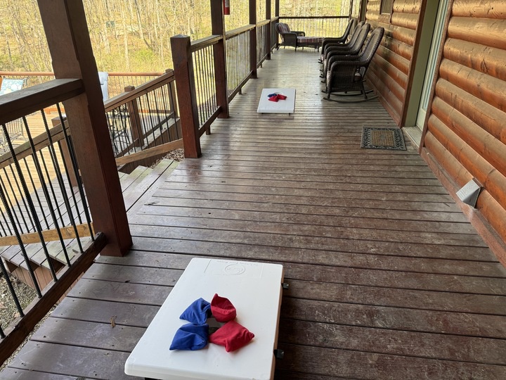 This was our 5th stay in the area. When we walked in the door, my husband exclaimed, “This is the nicest cabin yet!” The back deck was expansive with multiple entertaining spaces. On a rainy day, it was lovely to lounge on the covered porch and the hot tub and enjoy the trees. Nice and clean with everything we needed, and the management team got us all the info we needed promptly.
