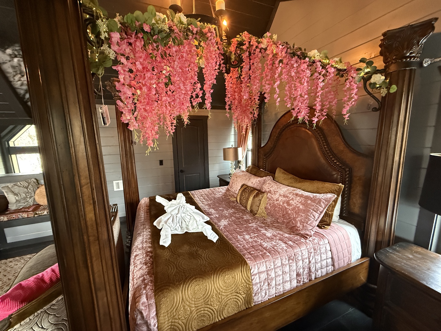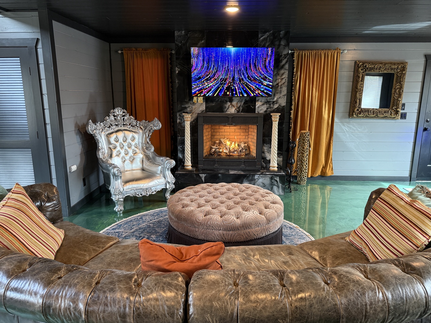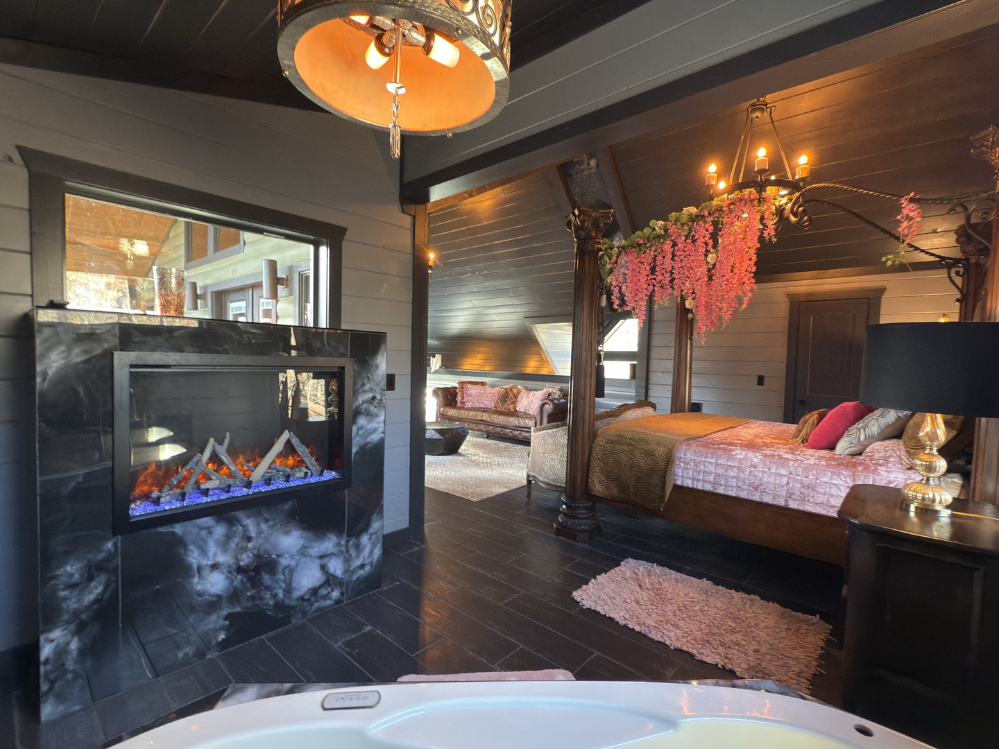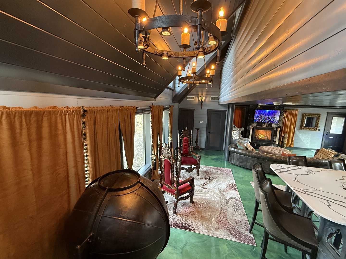 Welcome to Emerald City, a fully reimagined luxury cabin inspired by the darker elegance of Wicked and the mystique of Oz. Designed for Adults, this retreat blends modern gothic design, intentional craftsmanship, and indulgent comfort—created exclusively for couples seeking a bold, romantic escape.