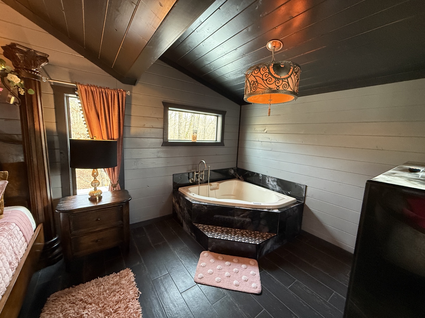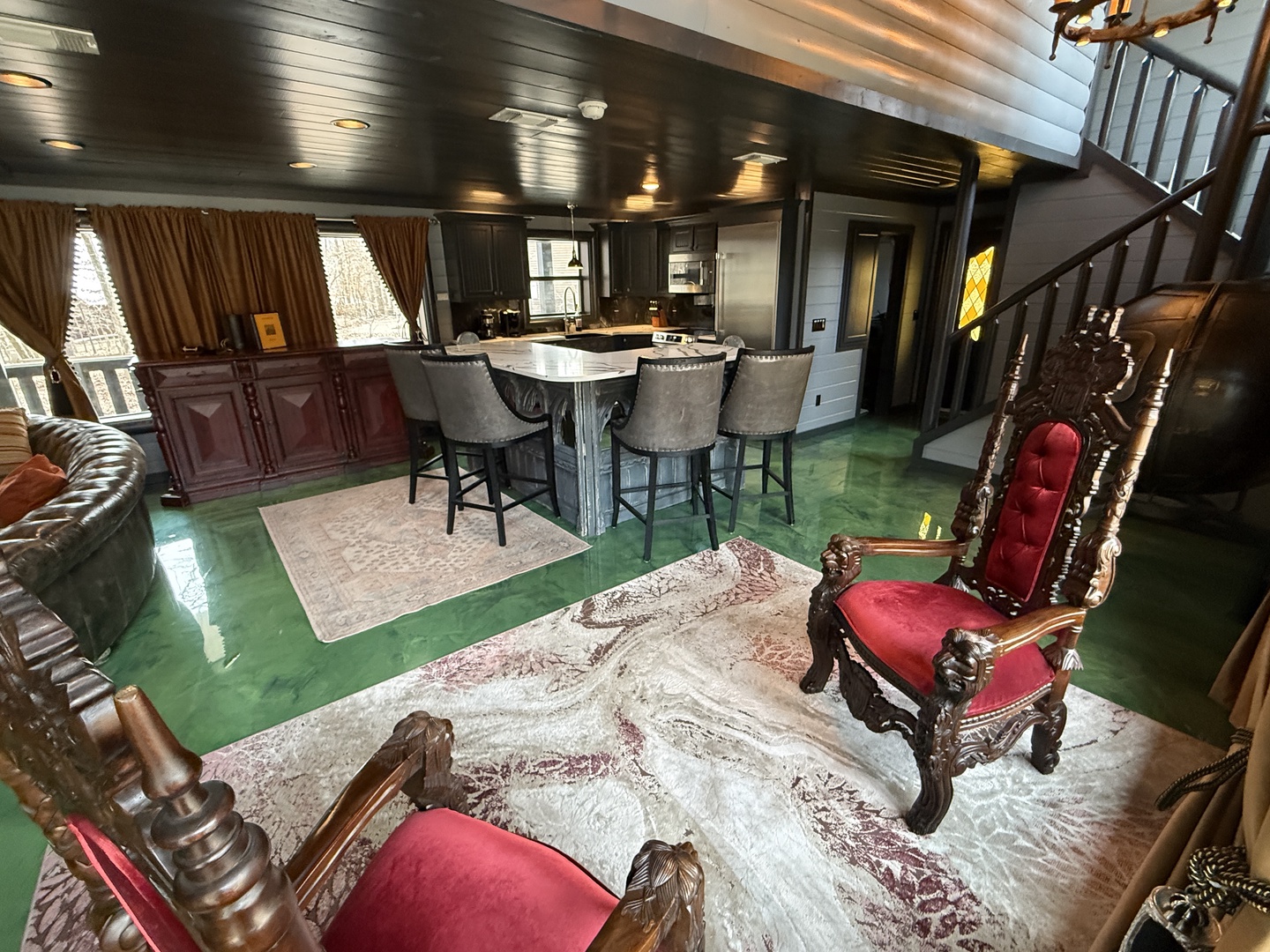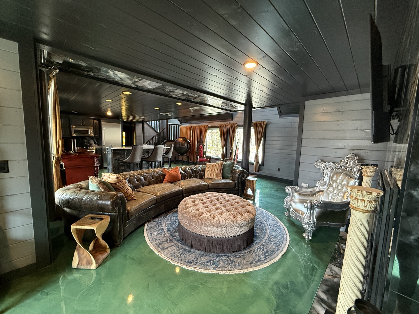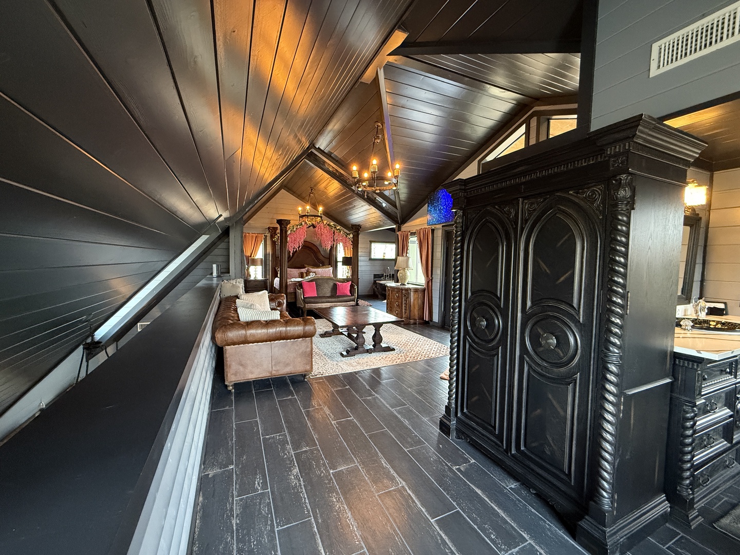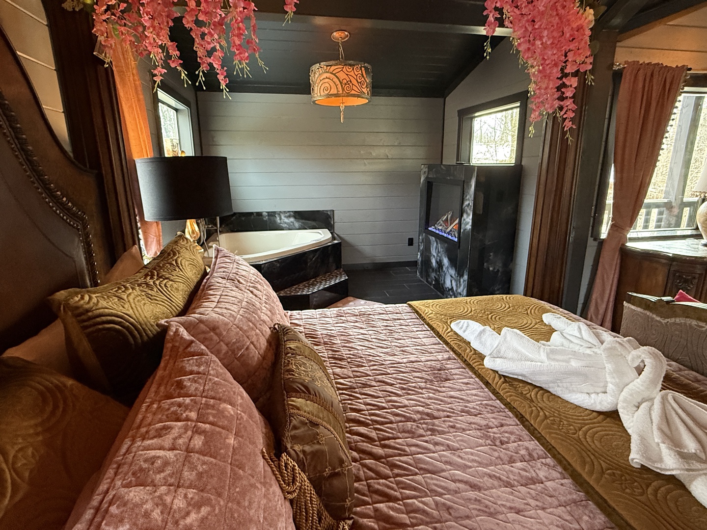 Welcome to Emerald City, a fully reimagined luxury cabin inspired by the darker elegance of Wicked and the mystique of Oz. Designed for Adults, this retreat blends modern gothic design, intentional craftsmanship, and indulgent comfort—created exclusively for couples seeking a bold, romantic escape.