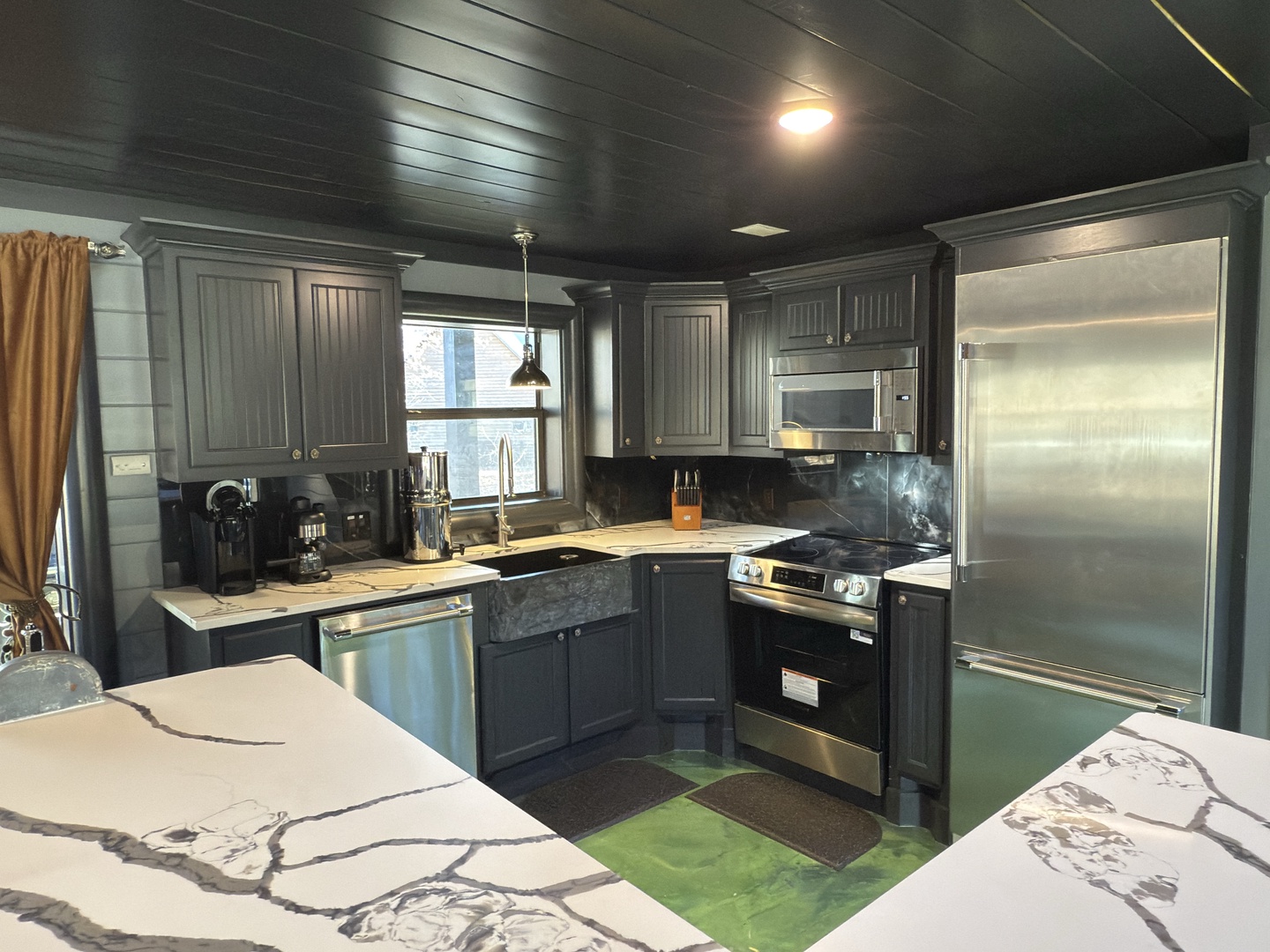 The kitchen has been fully redesigned for beauty, scale, and entertaining: