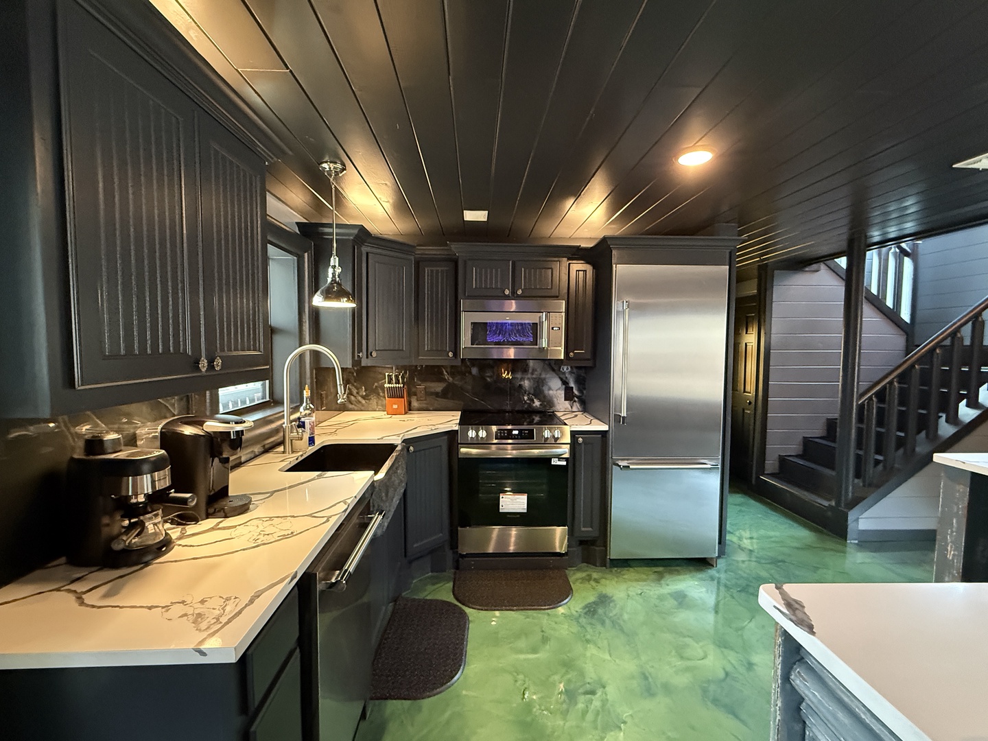 Emerald City offers over 800 square feet of deck and flagstone patio space, thoughtfully designed to extend the experience outdoors.
