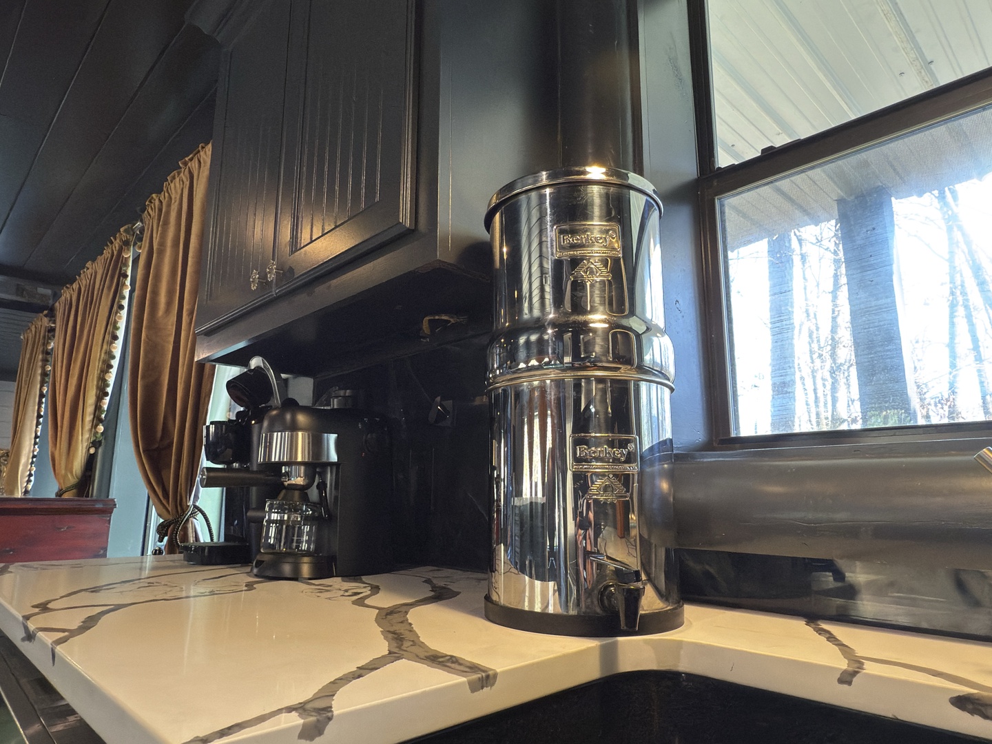 The kitchen is fully stocked and ideal for romantic dinners or indulgent late-night bites.