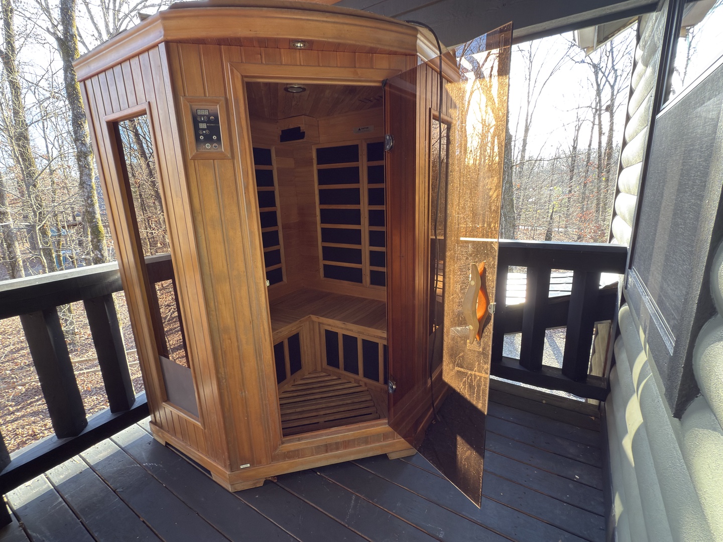 For ultimate convenience, the sauna is located just outside the loft doors, allowing seamless transitions between the upstairs suite and relaxation—no stairs required.