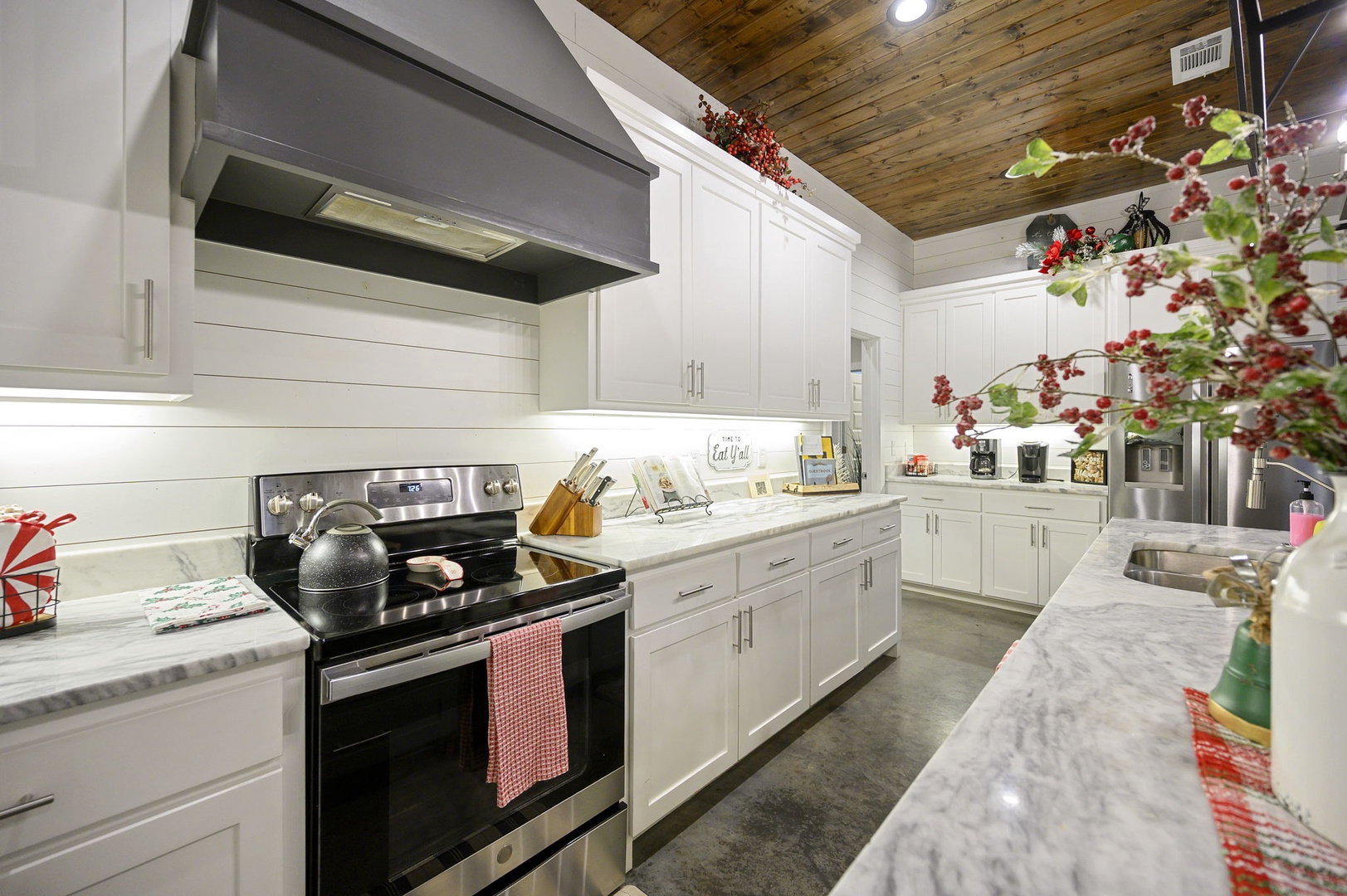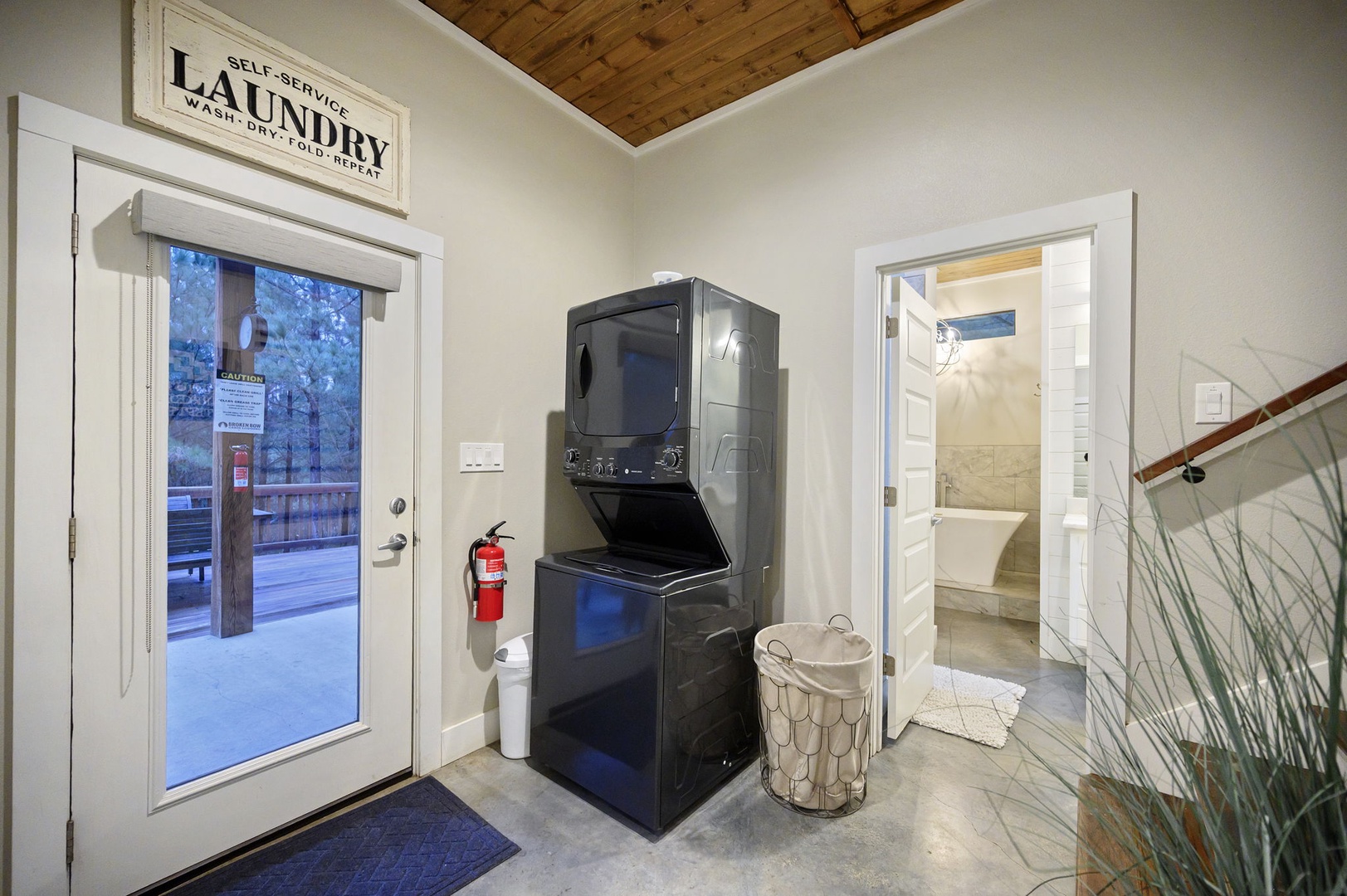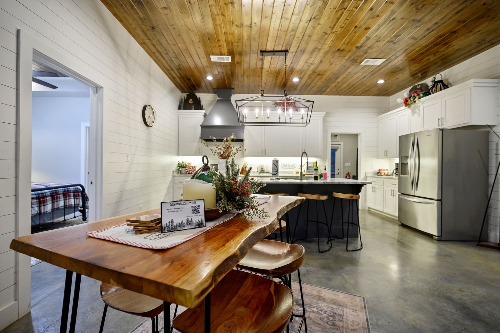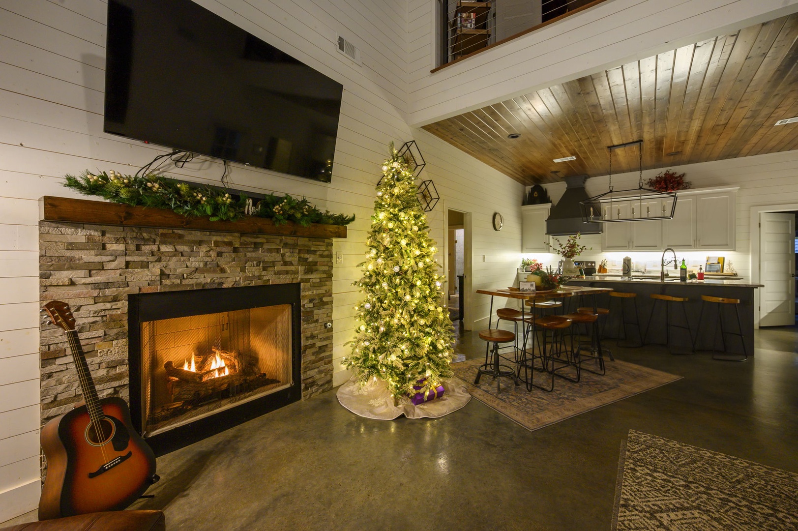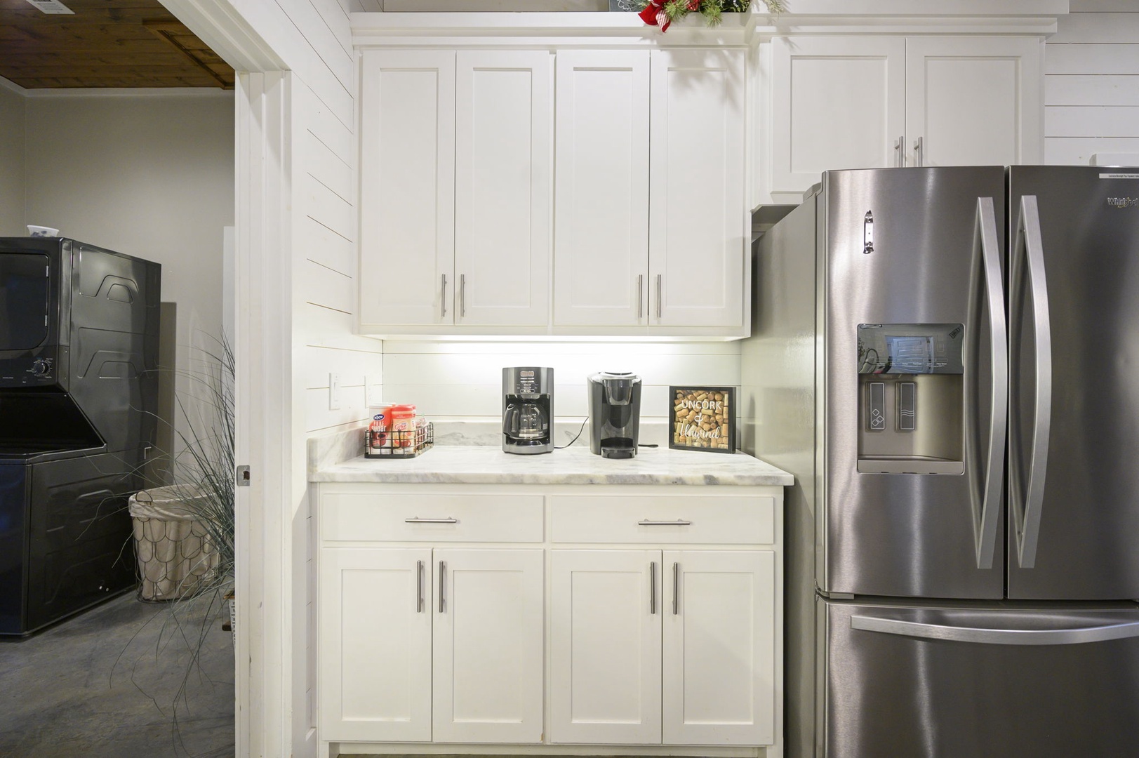 This cabin has open Kitchen and Living area. The Kitchen is fully equipped with all the components to cook and serve a gourmet meal including stainless steel appliances and granite counter tops.