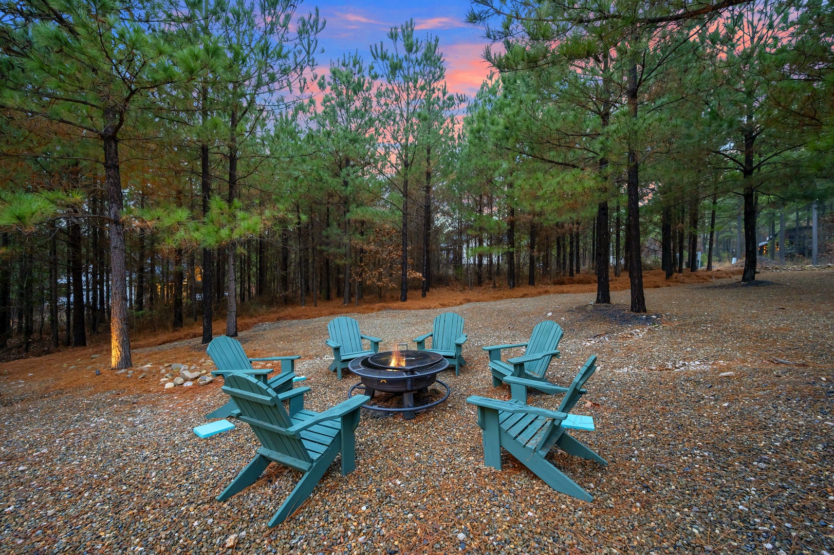 The outdoor space includes a hot tub, Gas fireplace, outdoor seating, and wood burning fire pit.