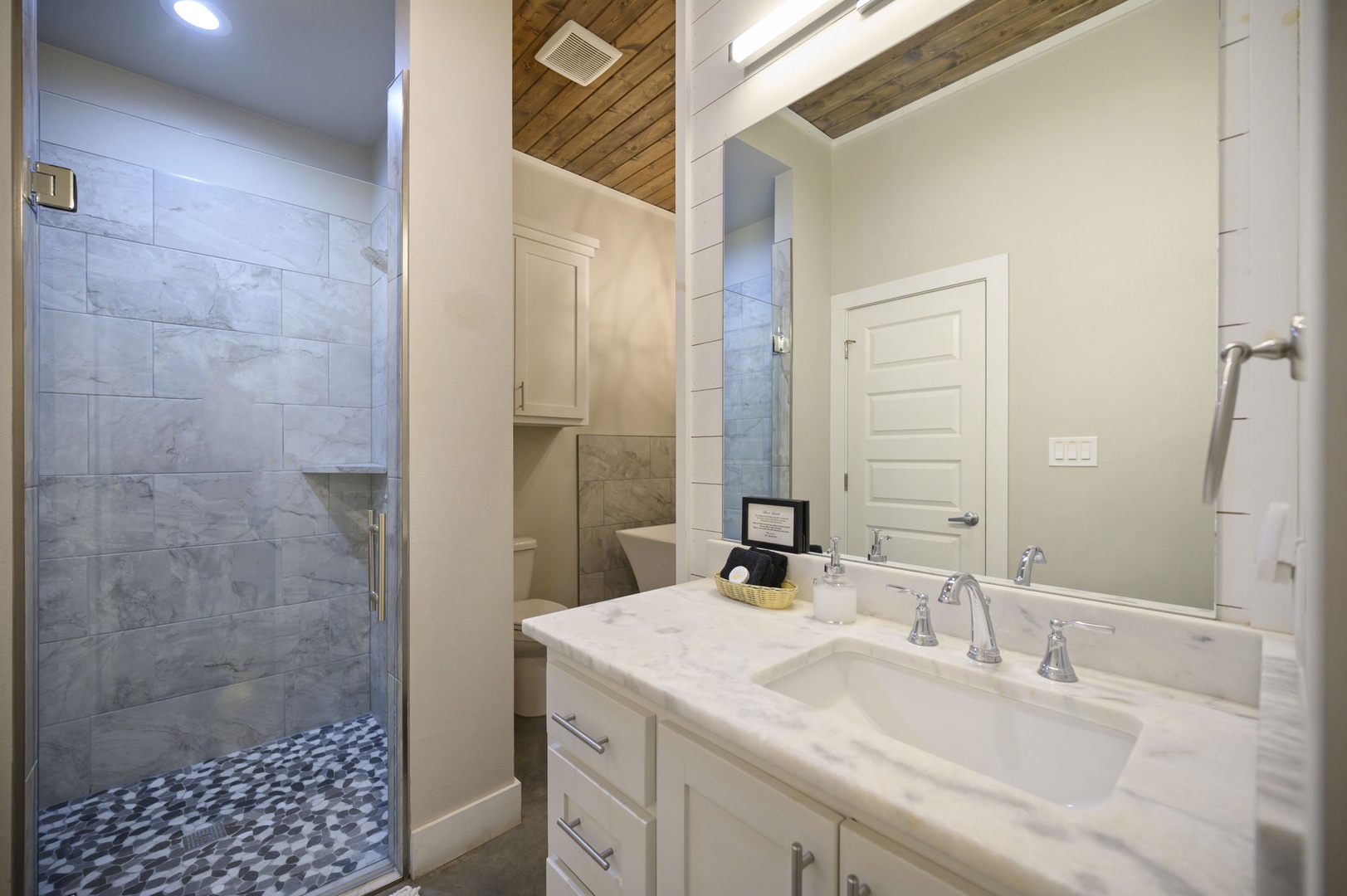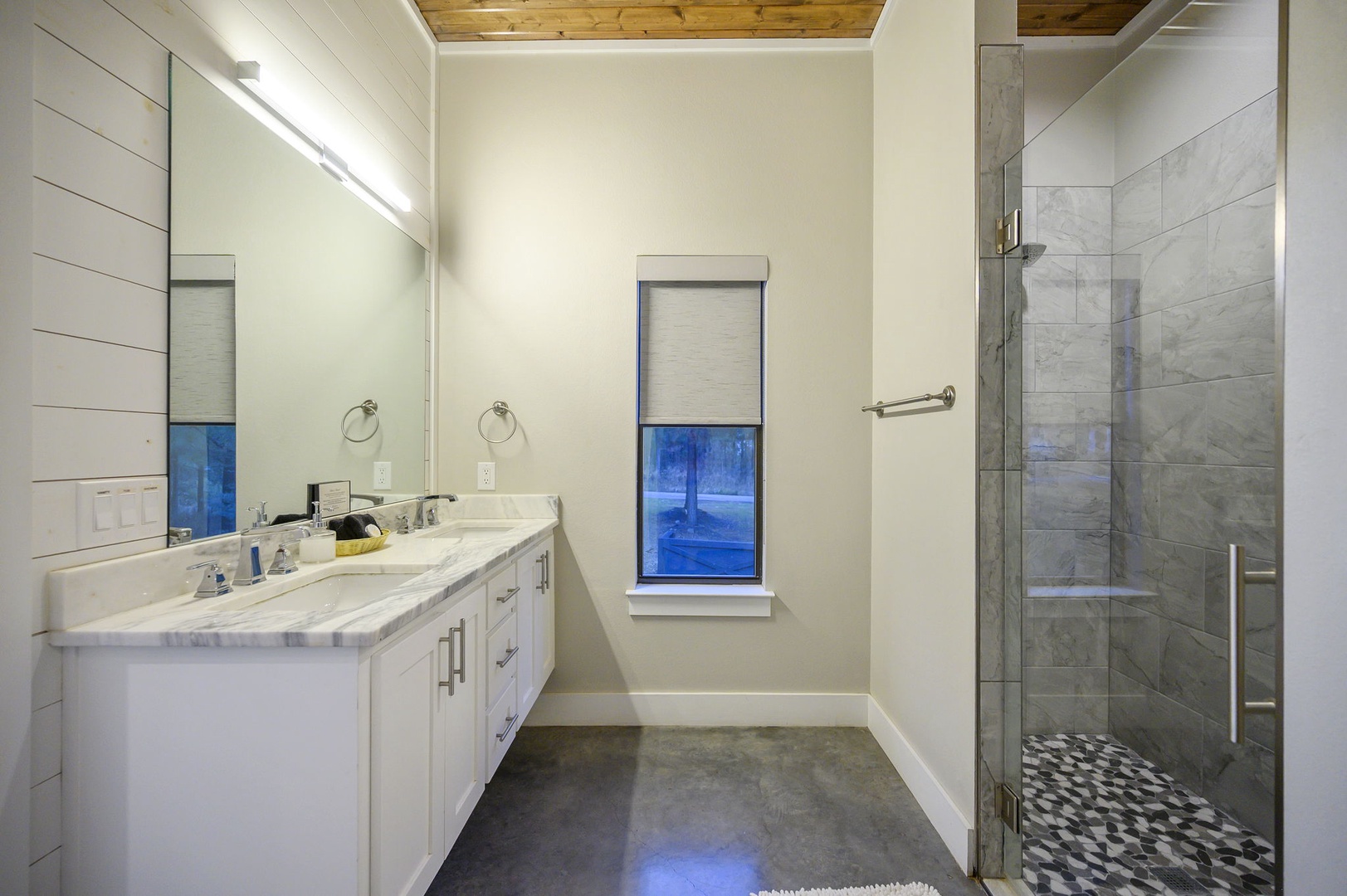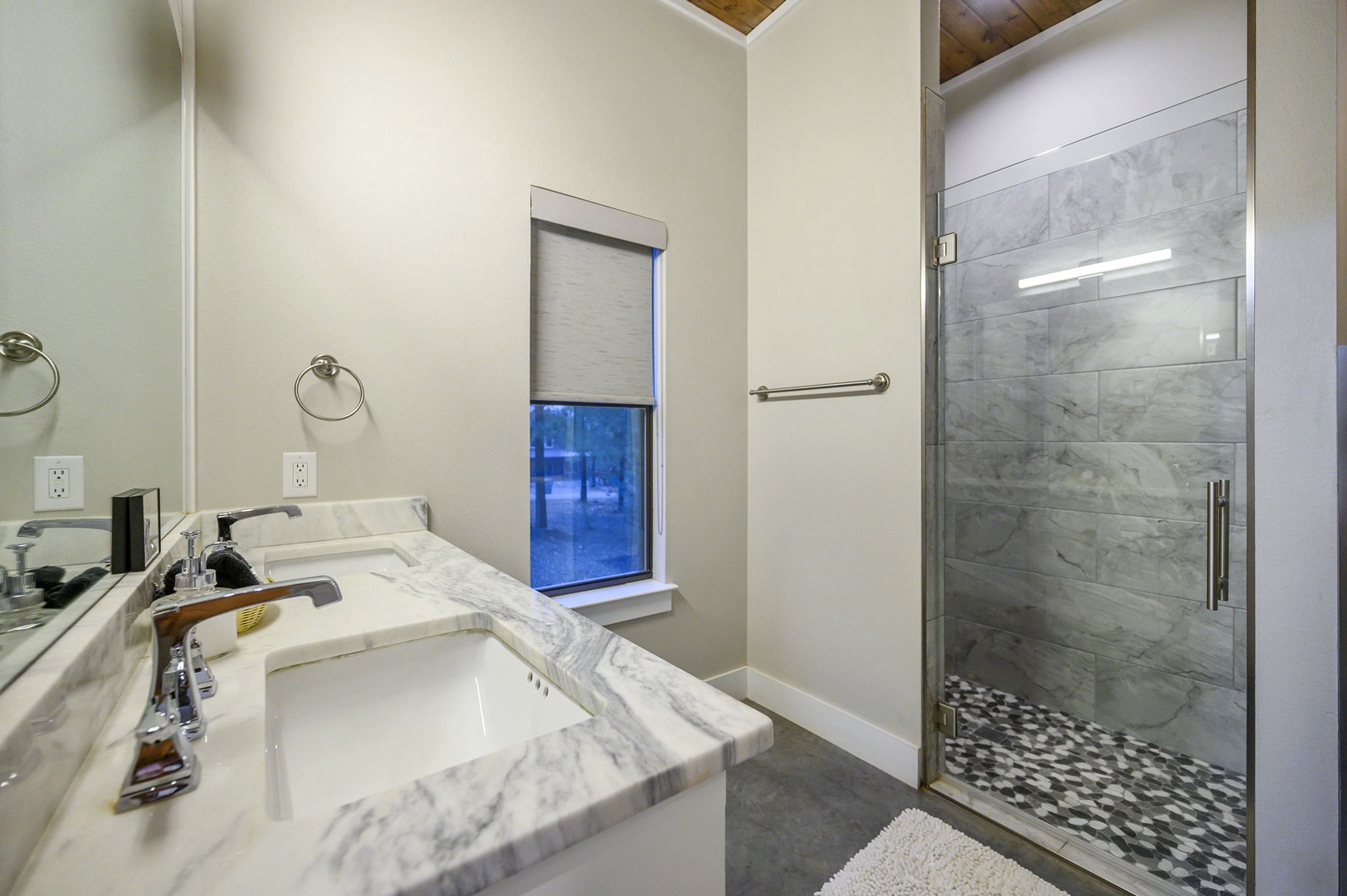 There are 2 King bedrooms. Each bedroom has a TV with DirecTV and an attached bathroom with a walk-in shower and soaking tub.