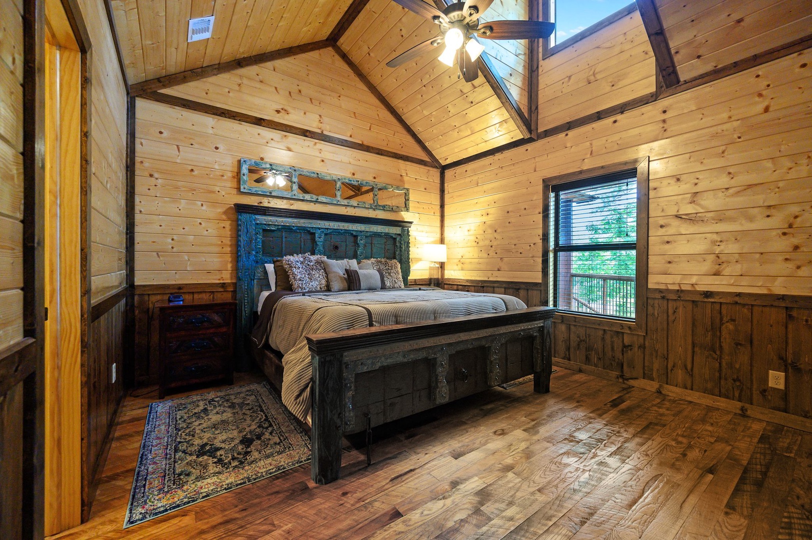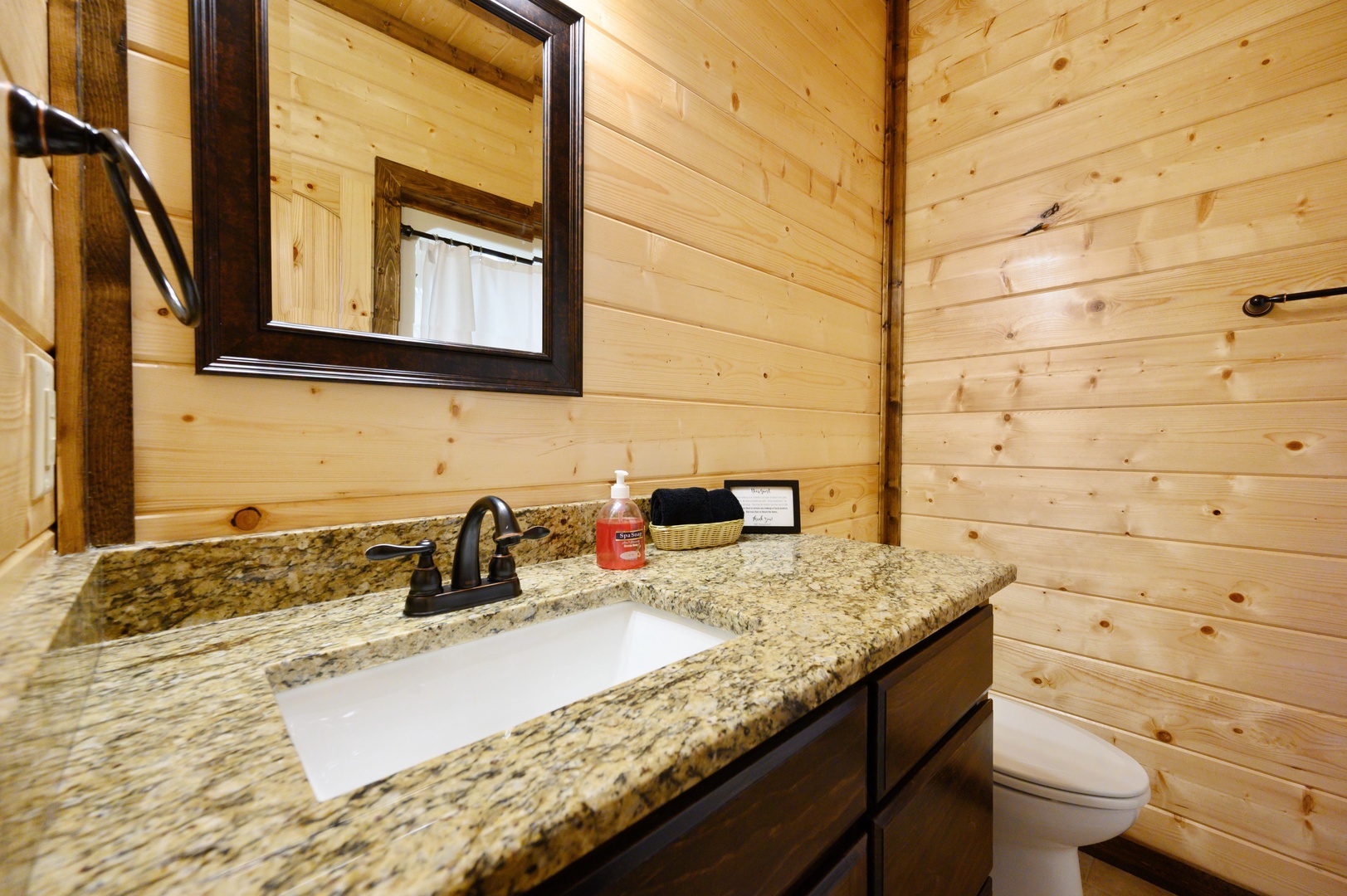 Nestled in the scenic beauty of Hochatown, Redberry Lodge offers a luxurious retreat perfect for gatherings of friends and family. This stunning cabin features five en-suite bedrooms, ensuring comfort and privacy for all guests. The spacious living area invites relaxation with its cozy gas fireplace and large, comfortable sectional, ideal for unwinding while watching the flat-screen TV. The fully equipped kitchen and dining room boast elegant granite countertops and a convenient gas range, providing everything needed for the family chef to create and serve delicious meals.