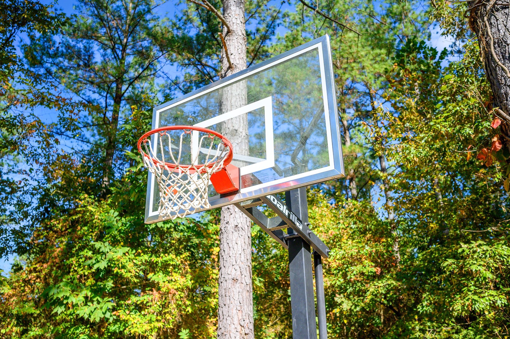 There are also four king suites, each with a private bath and balcony, and one with an additional fireplace. The outdoor deck boasts a fireplace, two TVs, a grill, and games like cornhole and basketball, plus a playground.