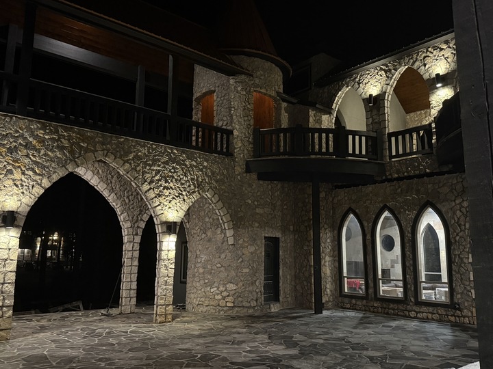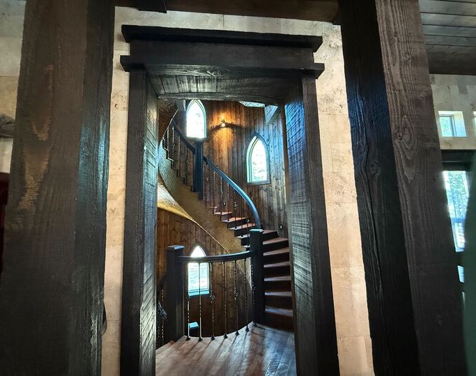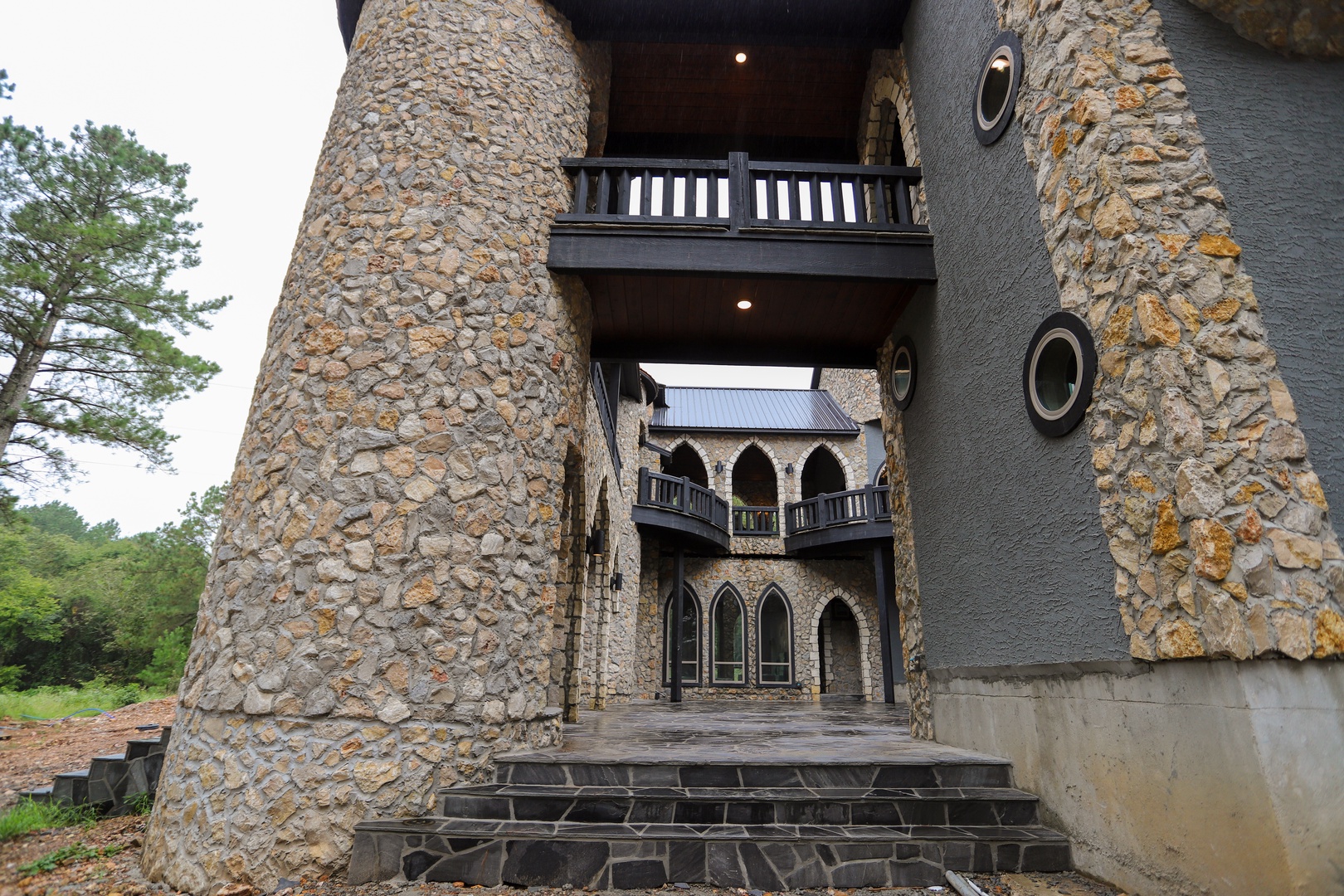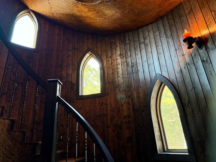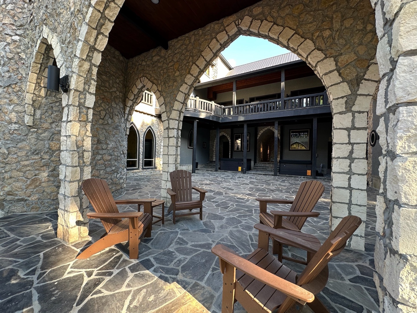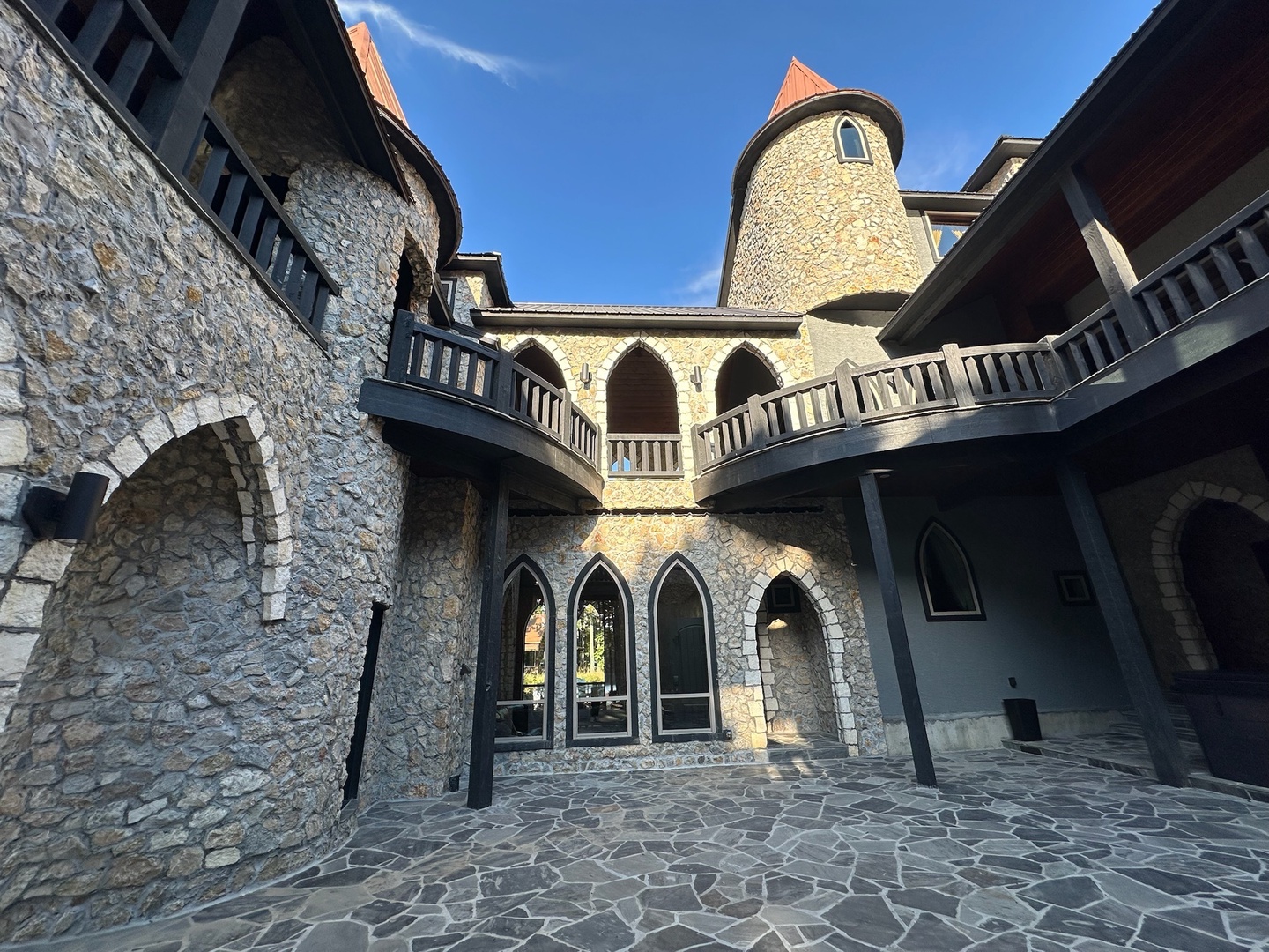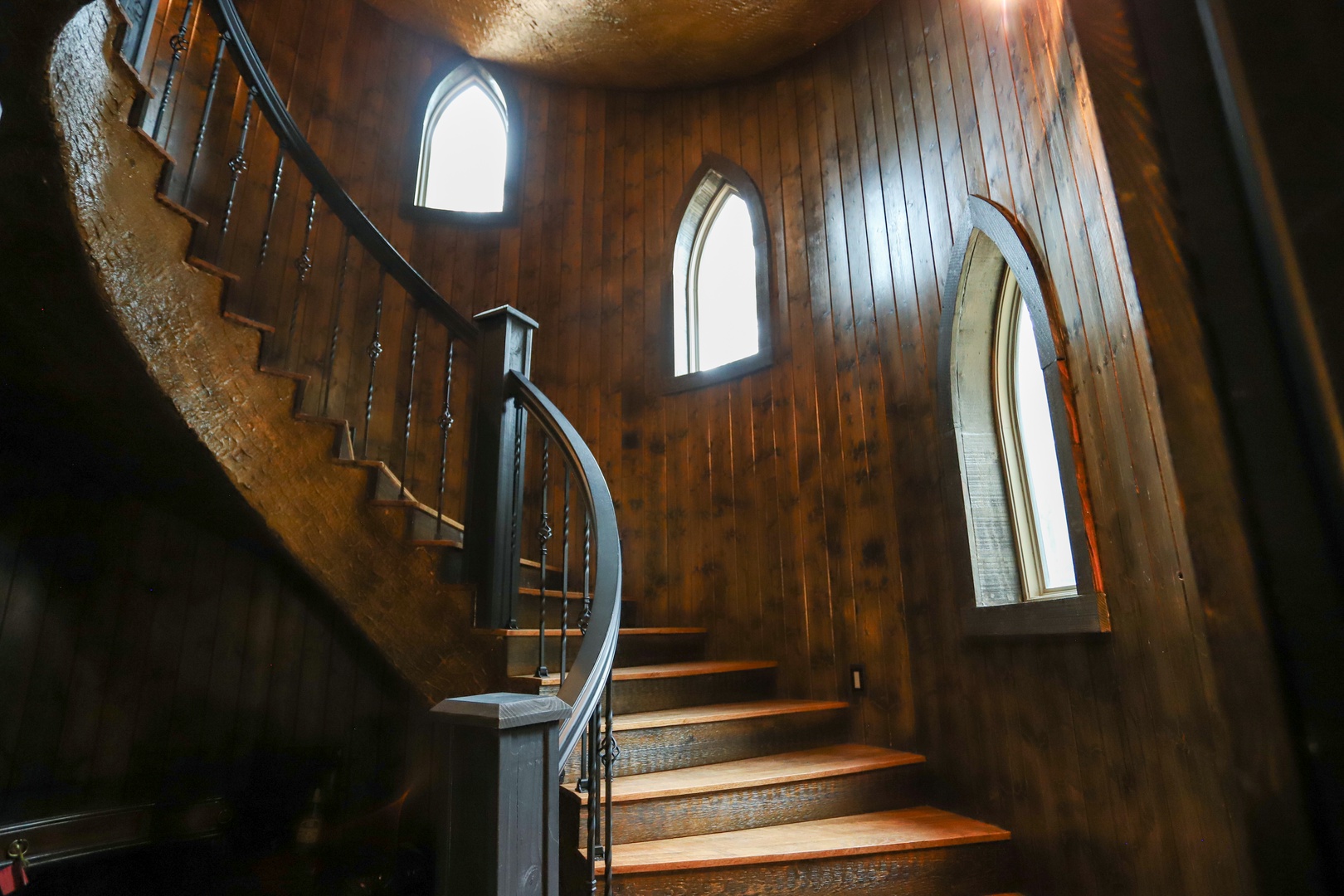 The primary entrance into a huge arched corridor leads guests to a massive courtyard. Step up to enter Skeeter's writing room at the bottom of the 3 floor, spiral staircase inside the main turret.