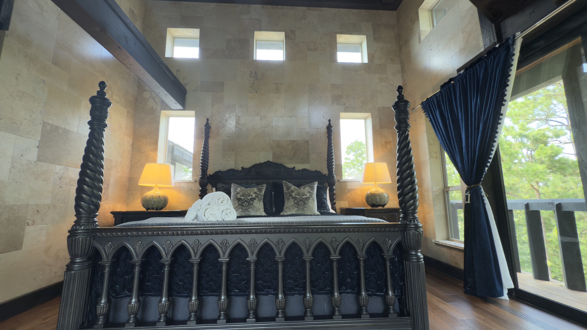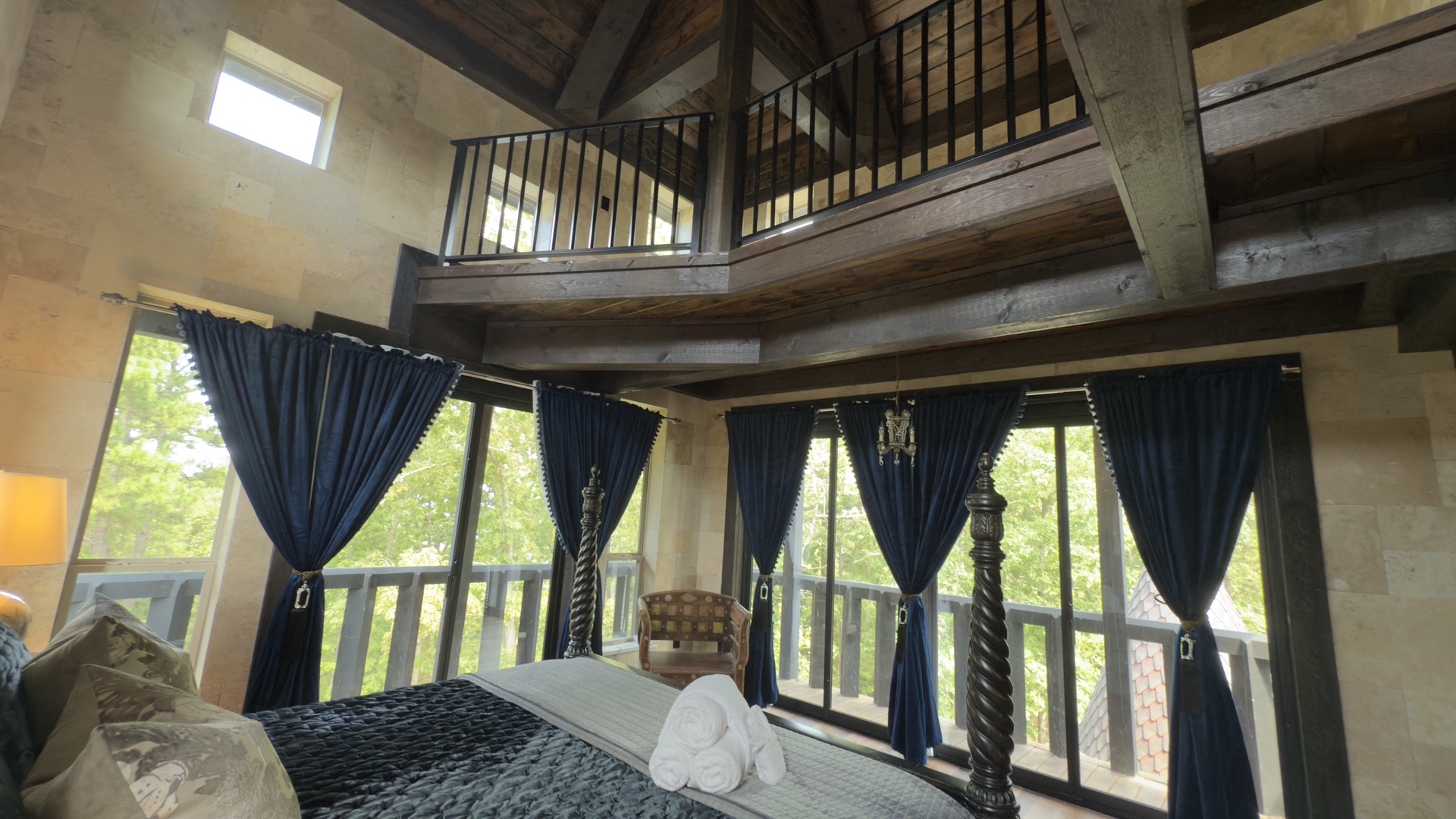 The headmaster suite is flanked by glass doors on two sides that slide and open completely for a treehouse feeling. The bed is incredible and fit for only the highest ranking and most powerful magicians.