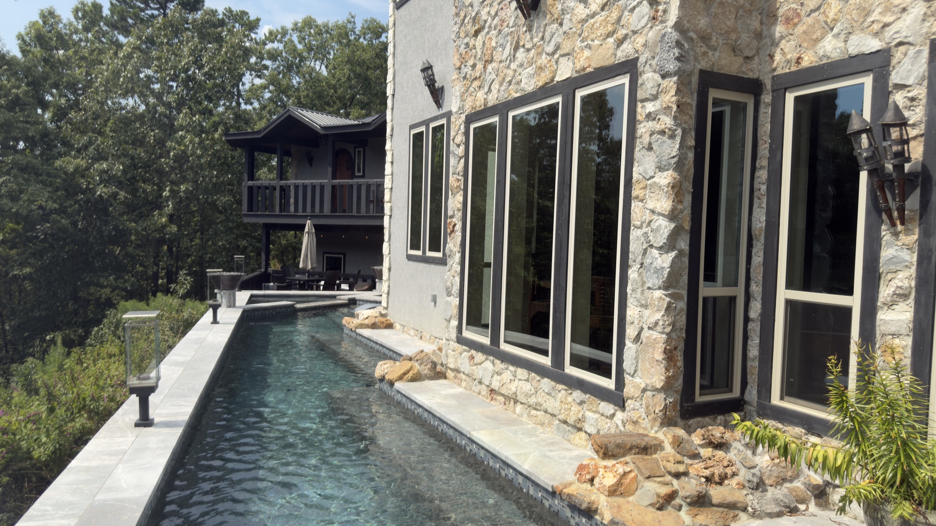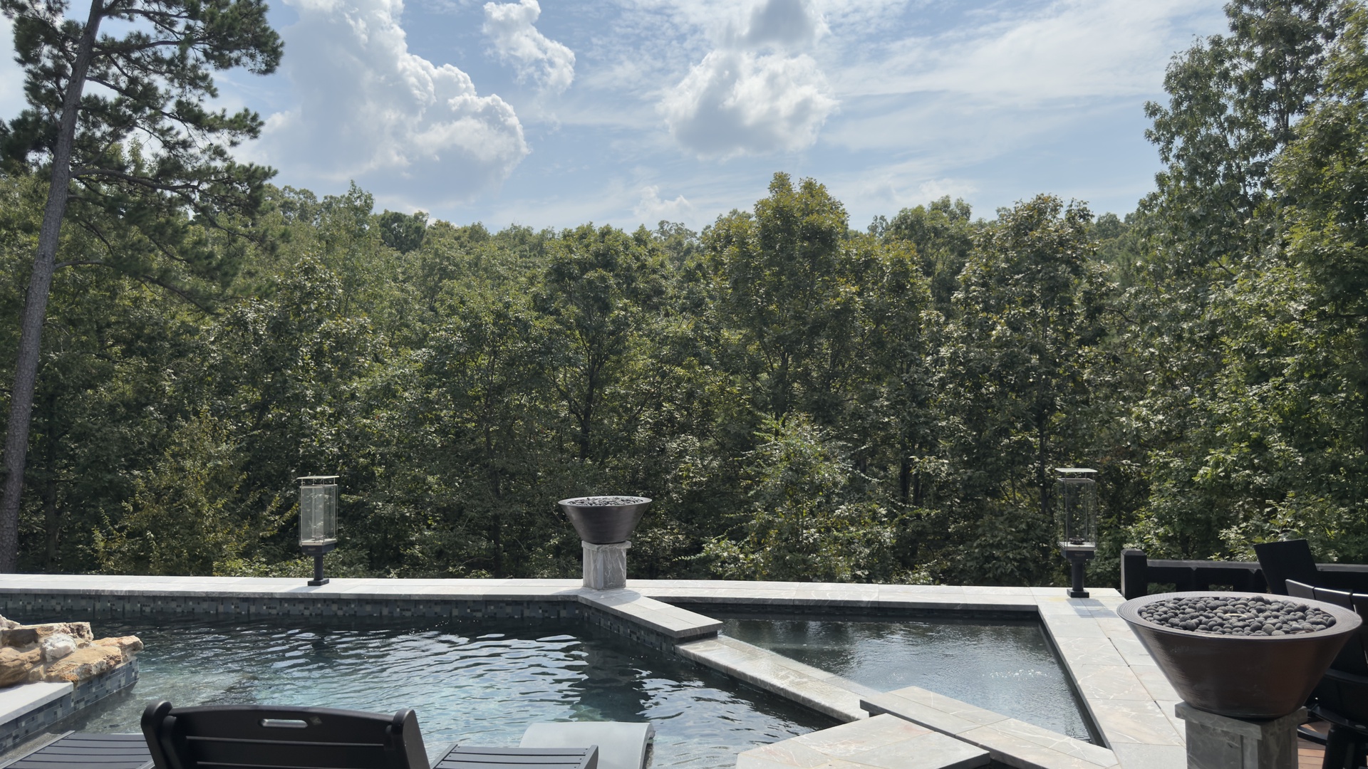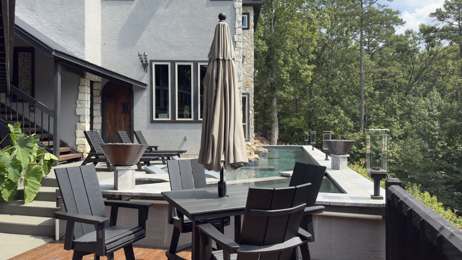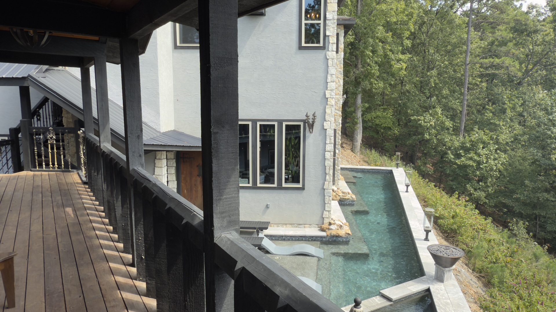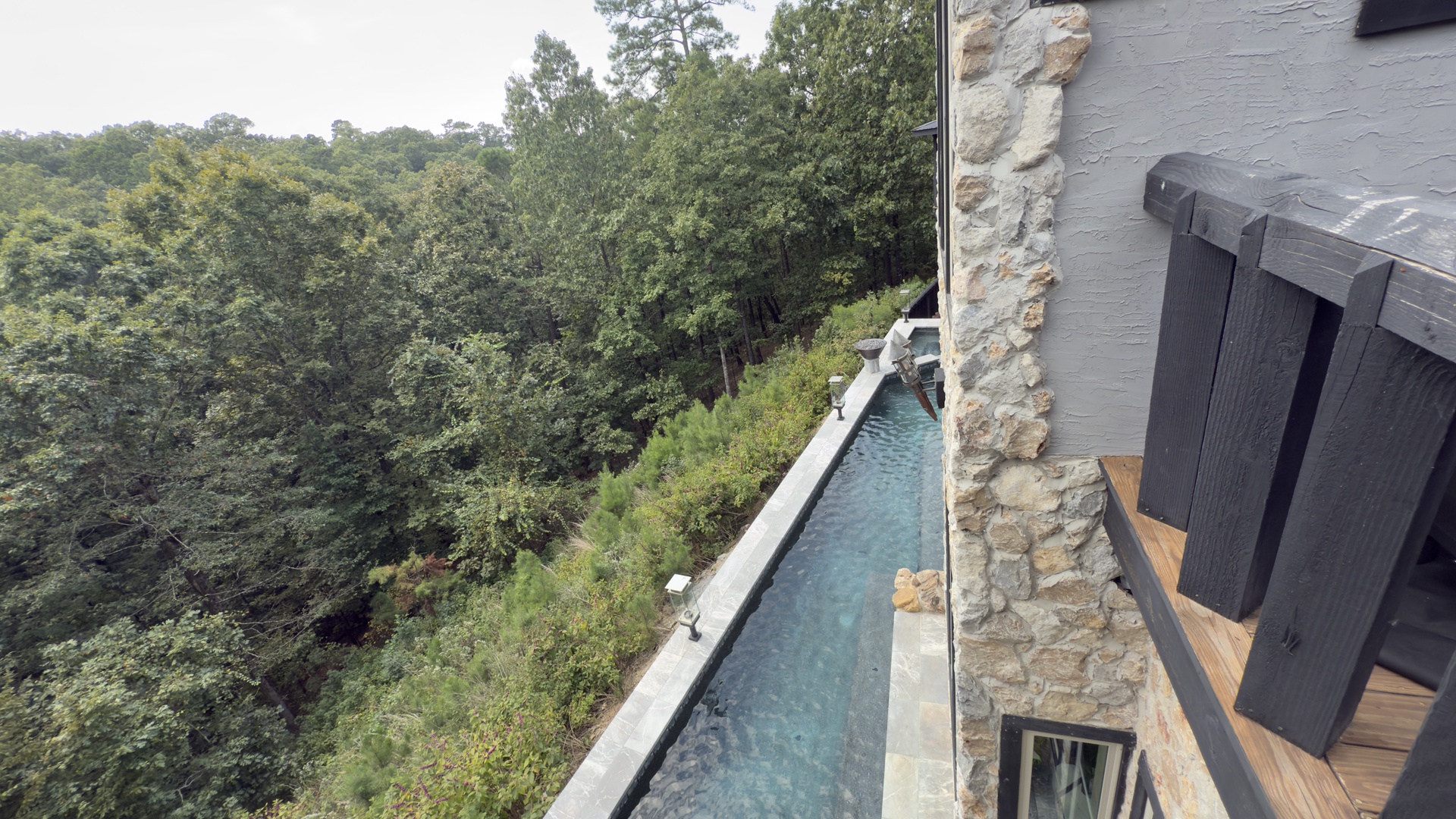 On the ground level, the 60 foot narrow pool represents the blackest of lakes. The triangle hot tub lies in the corner as a subtle, foreboding inclination toward the hallows to come. The pool is 4 feet deep and perfect for lounging and soaking up the sun and solitude offered at The Sorcerer.